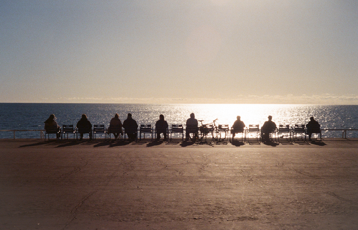 Nine people facing the Mediterranean Sea, Nice.
