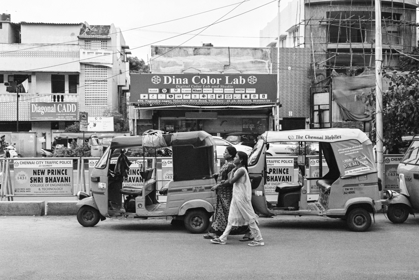 Two women walking in Chennai.
